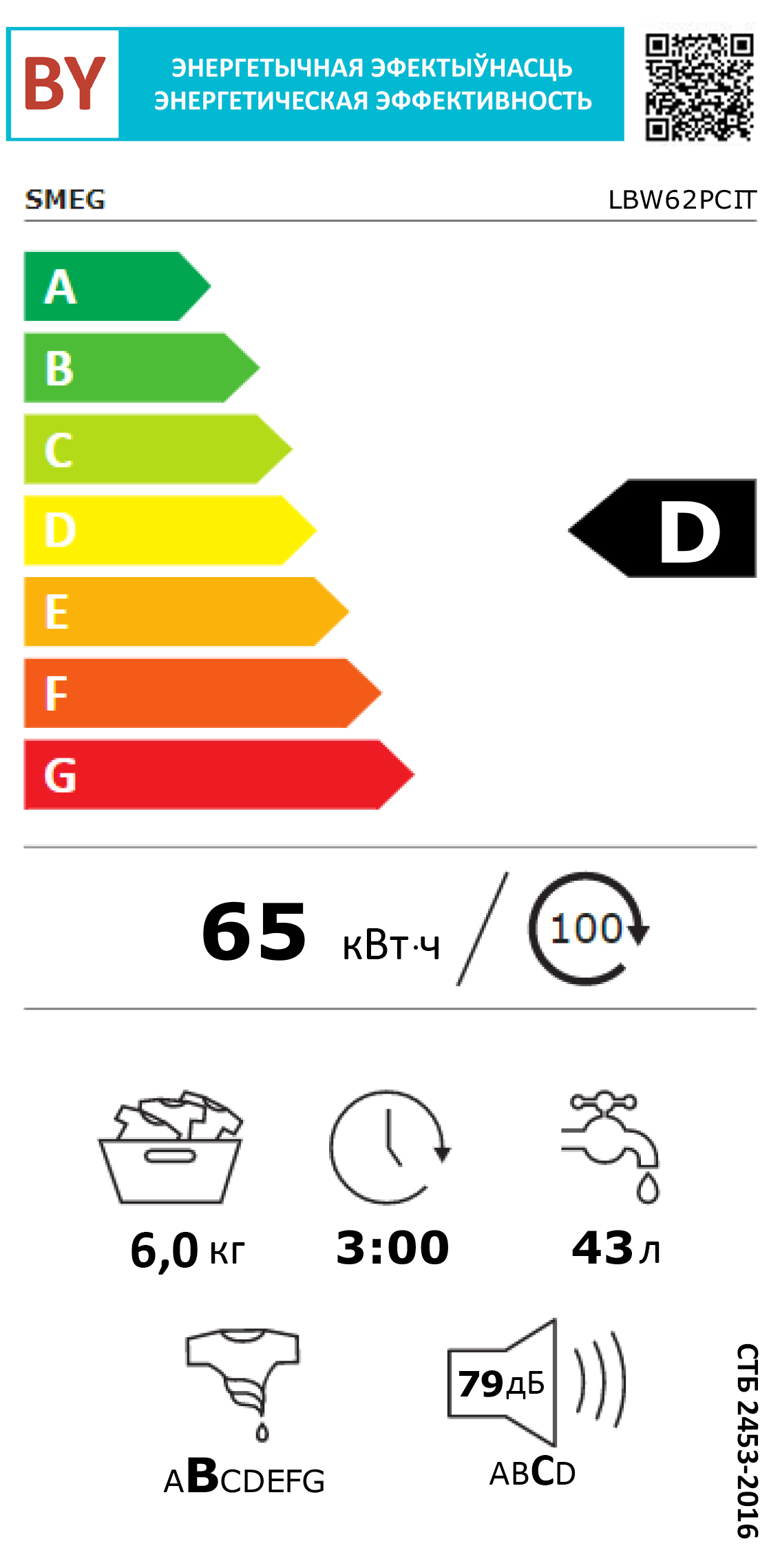 Уровень шума при стирке: 58 дБ(А)